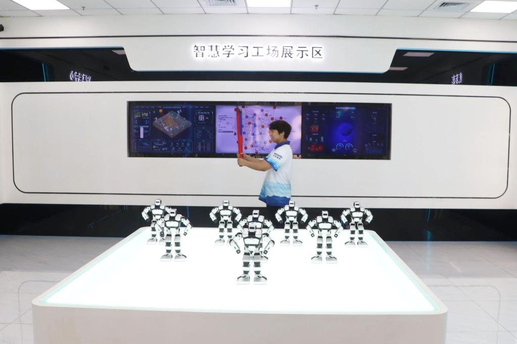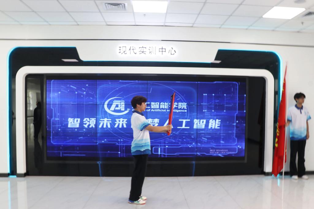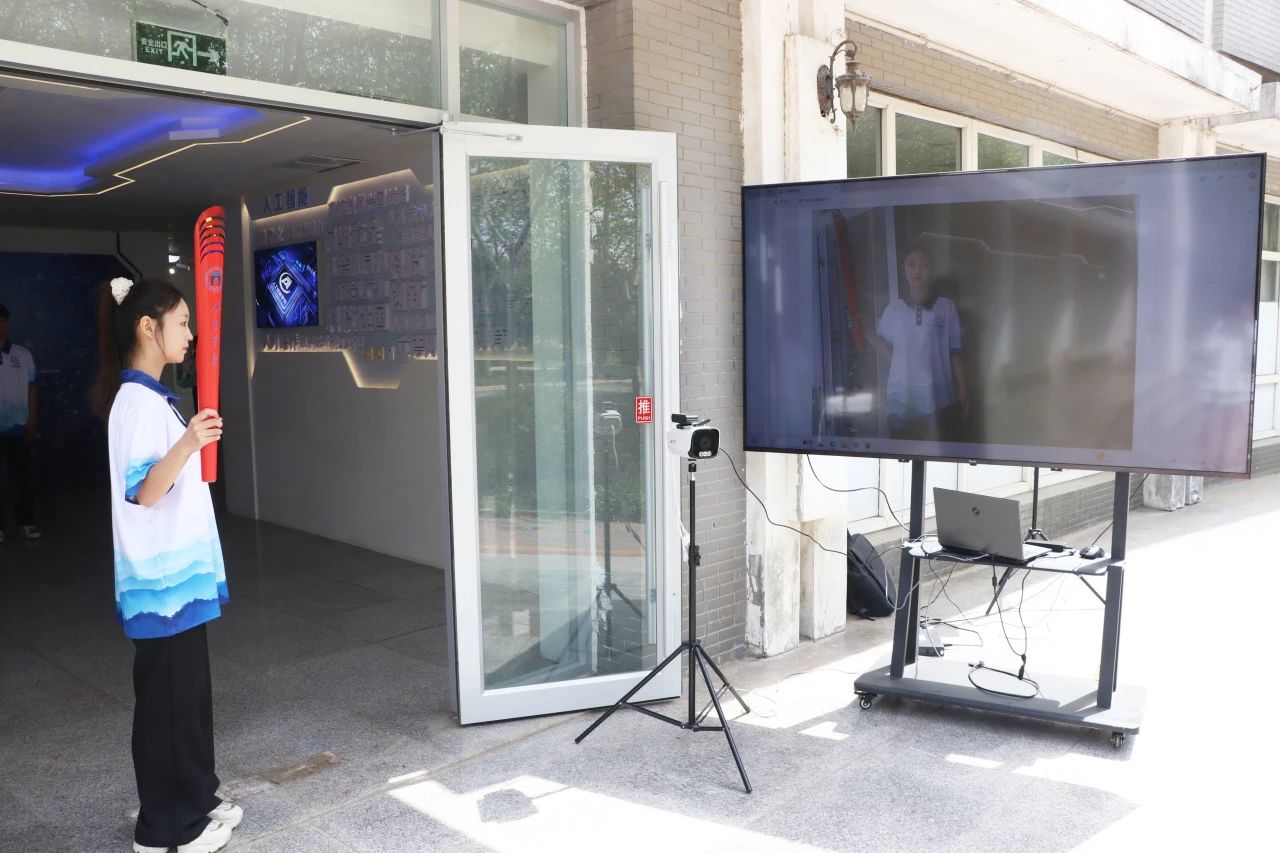 火炬接力以红色文化长廊为起点,蔡铭烨携带火炬奔赴 AI 历史展示区,点燃科技探索的序章。紧接着由岳秋香接棒,在 J 楼前流畅地划过人脸识别与航模展示区,将数字与创意的火花传递。随后,刘子坤接过火炬,沿着文化长廊穿梭,于光影间镌刻公司成长的年轮。第四棒,杨一萌以火炬为引,联动青春的旋律,点燃实训楼南侧的高歌;最终,王嘉旭高举火炬踏入 X1 大厅,启动机器人与 VR 的未来之门。每一段接力,皆是技术与梦想的接力;每一次交接,都让科技的薪火得以延续