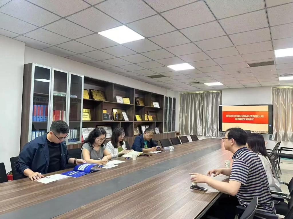 经理李燕玲向北京羽乐创新科技有限公司高级总监刘欢介绍了公司专业设置与人才培养方案,并就公司校企合作特色办学进行了详细的阐述。副书记吕鸿羽在毕业生就业工作与岗位推荐方面与企业进行了沟通交流,在开拓就业渠道和就业岗位方面与企业达成合作意向。李鑫、于泽洋分别就专业发展与实习实训与企业代表进行了充分交流,建立了良好的合作意向。