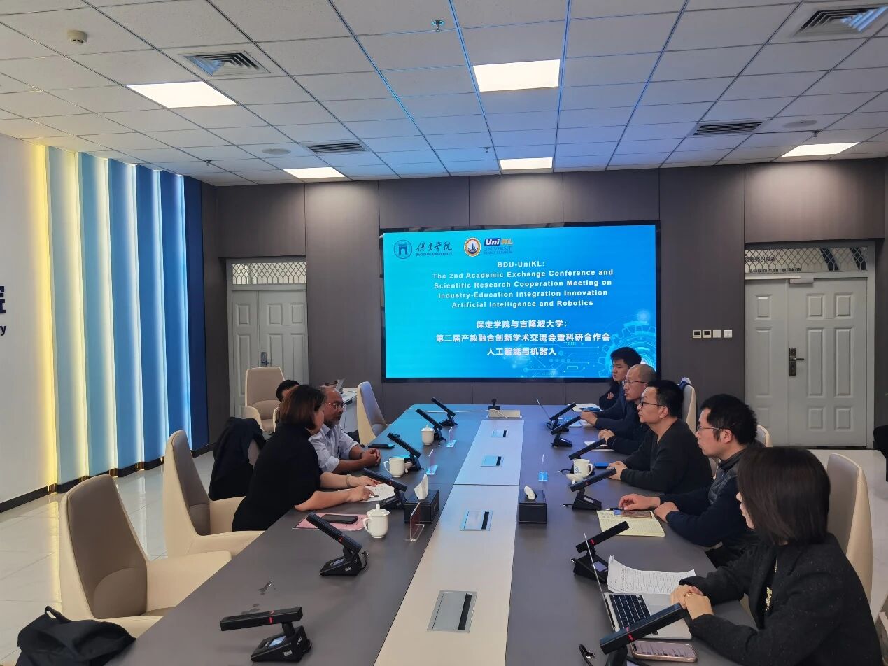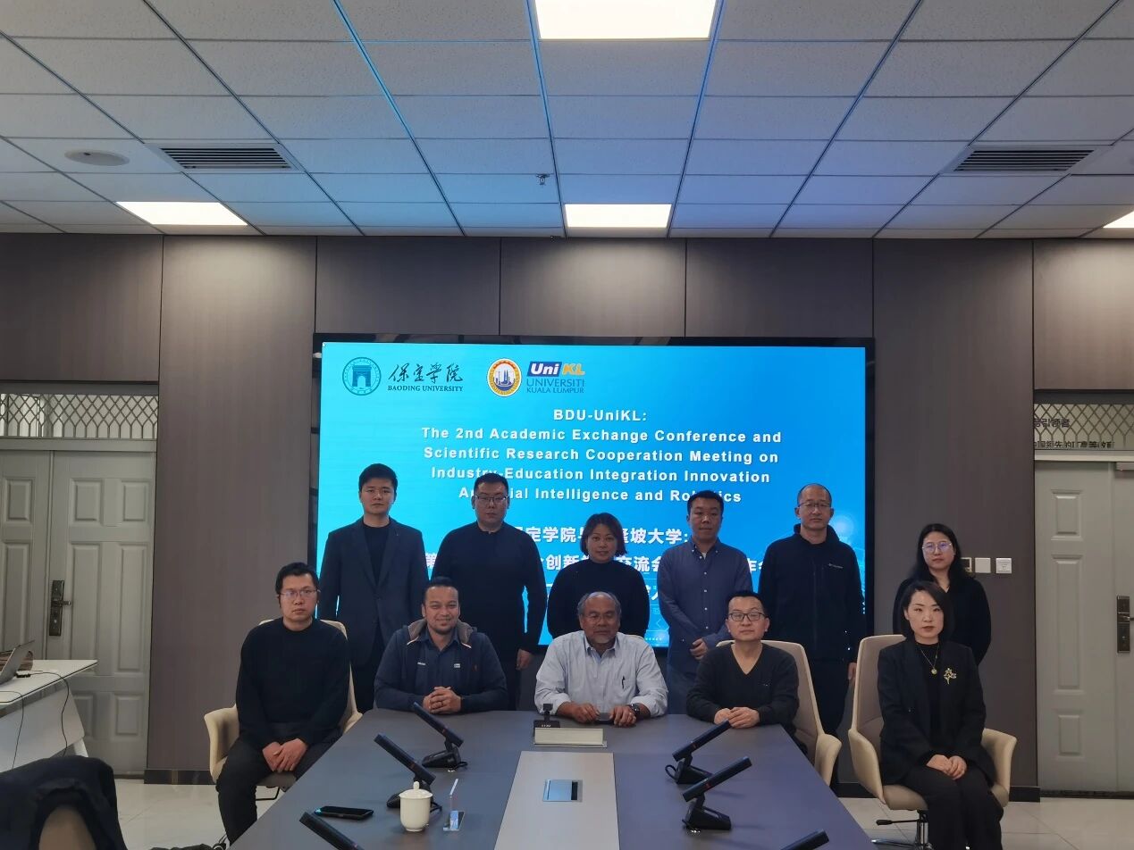 1月29日下午,第二届中马产教融合创新学术交流会暨科研合作会在太阳成集团tyc234cc会议室成功举行。马来西亚吉隆坡大学副董事长阿兹米·哈桑率代表团访问,并与太阳成集团tyc234cc合作办学的数据科学与大数据技术、机器人工程和物联网工程三个专业师生代表进行深入研讨。双方围绕中外合作办学、产教融合、人工智能领域人才培养及科研合作等多项议题展开交流。双方以推动高质量中外合作办学项目为目标,针对合作办学相关专业的联合培养模式开展了务实且富有成效的讨论。