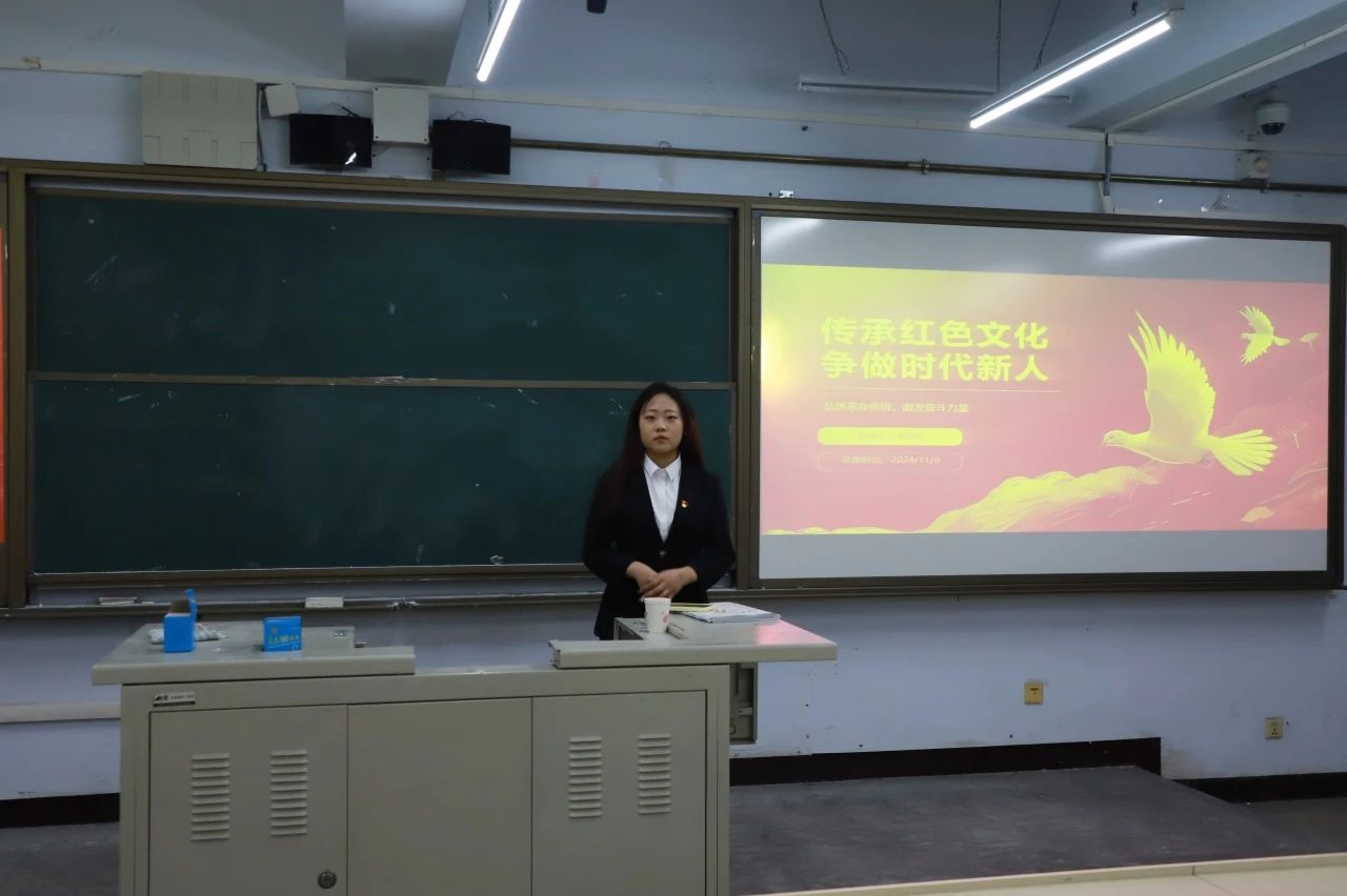 2024年11月6日,太阳成集团tyc234cc员工党支部在B-215召开了“两周一课”常态化党课培训活动,此次党课的主题为“传承红色文化,争做时代新人”,由支部员工党员刘思佳同志主讲,有太阳成集团tyc234cc员工党员及入党积极分子共113人参与学习。