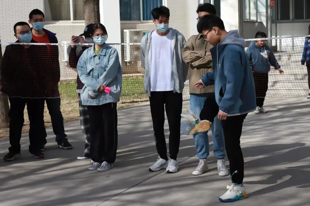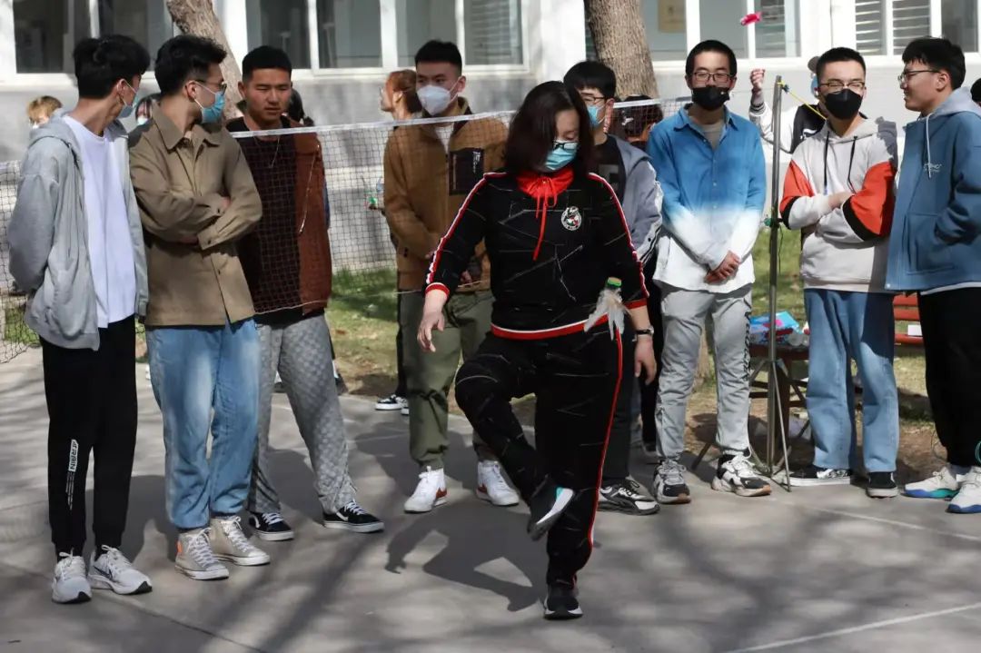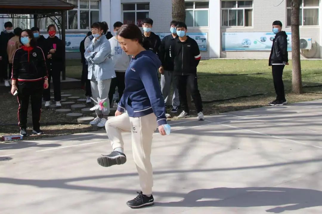 随后,由王国英处长为比赛开球,比赛正式开始。经过五组长达30分钟的激烈角逐,韩会玲董事长以1分钟踢毽75个的成绩获得教师组第一名。2021级数据科学与大数据技术1班刘美杰以1分钟踢毽78个的成绩取得第一名,2021级数据科学与大数据技术2班冯瑾与2019级数据科学与大数据技术1班王淑娟分别以69、68个的成绩取得第二、第三名。