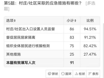 1、线上问卷,调研当地的防疫措施及群众的意见。本次问卷调查共91人参与,通过问卷数据对当今疫情及防疫措施进行总结并提出相关建议。