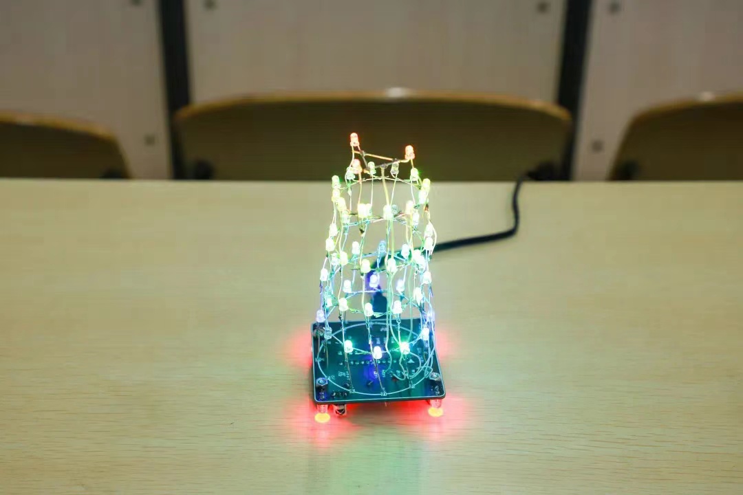 闫海龙组将彩灯设计成“i ️❤ u”的样子,彩灯依次亮起,美观十足;