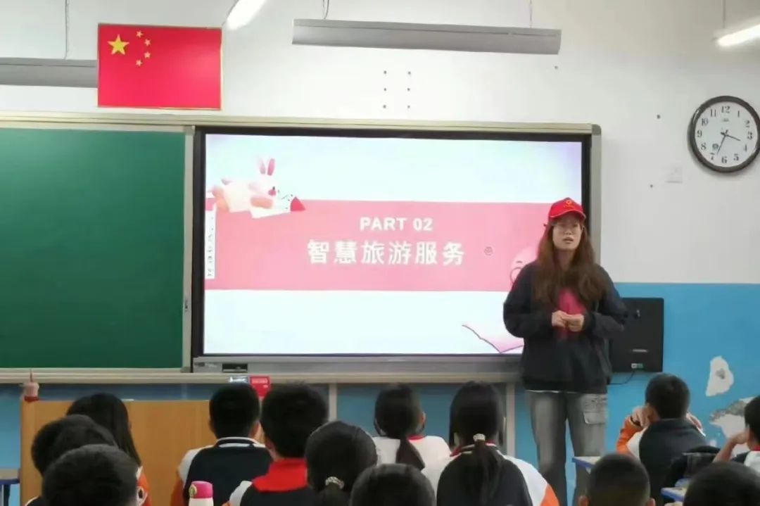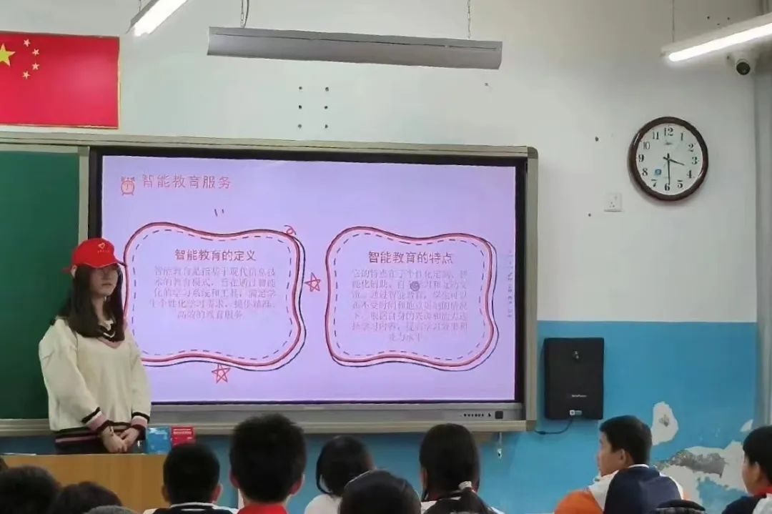 此次科普教育宣讲中,郭培艺、陈翠冉和刘沛彤以“人工智能与服务业”为题开展知识讲座,围绕智慧教育服务、智慧旅游服务和智慧餐饮服务与人工智能的关系展开讲解,并且预测了智慧服务的未来。在志愿者们绘声绘色的讲解中,小朋友们情绪高涨,踊跃发表自己的认识和见解,积极与志愿者们展开互动。