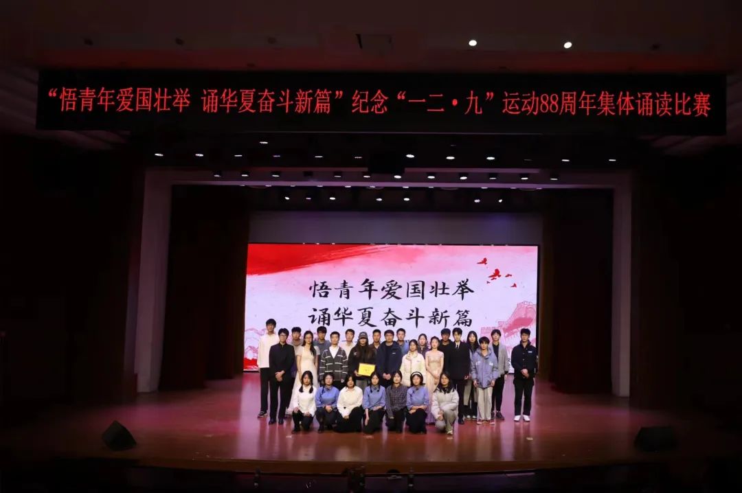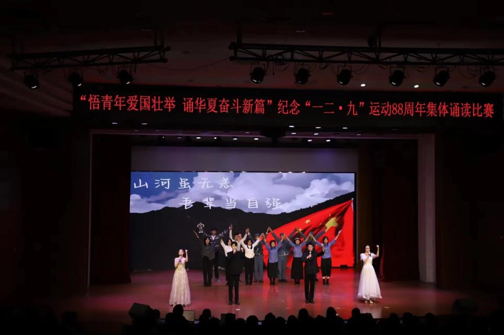 为纪念“一二·九”运动88周年,大力弘扬以爱国主义为核心的民族精神,进一步激发青年员工爱党爱国、爱校荣校热情,引导青年员工坚定理想信念,传承红色基因,青春建功新时代。12月6日,太阳成集团tyc234cc积极参与由校团委主办、校员工会承办的“悟青年爱国壮举,诵华夏奋斗新篇”纪念“一二·九”运动88周年集体诵读比赛,比赛在畿辅文化会堂举行。