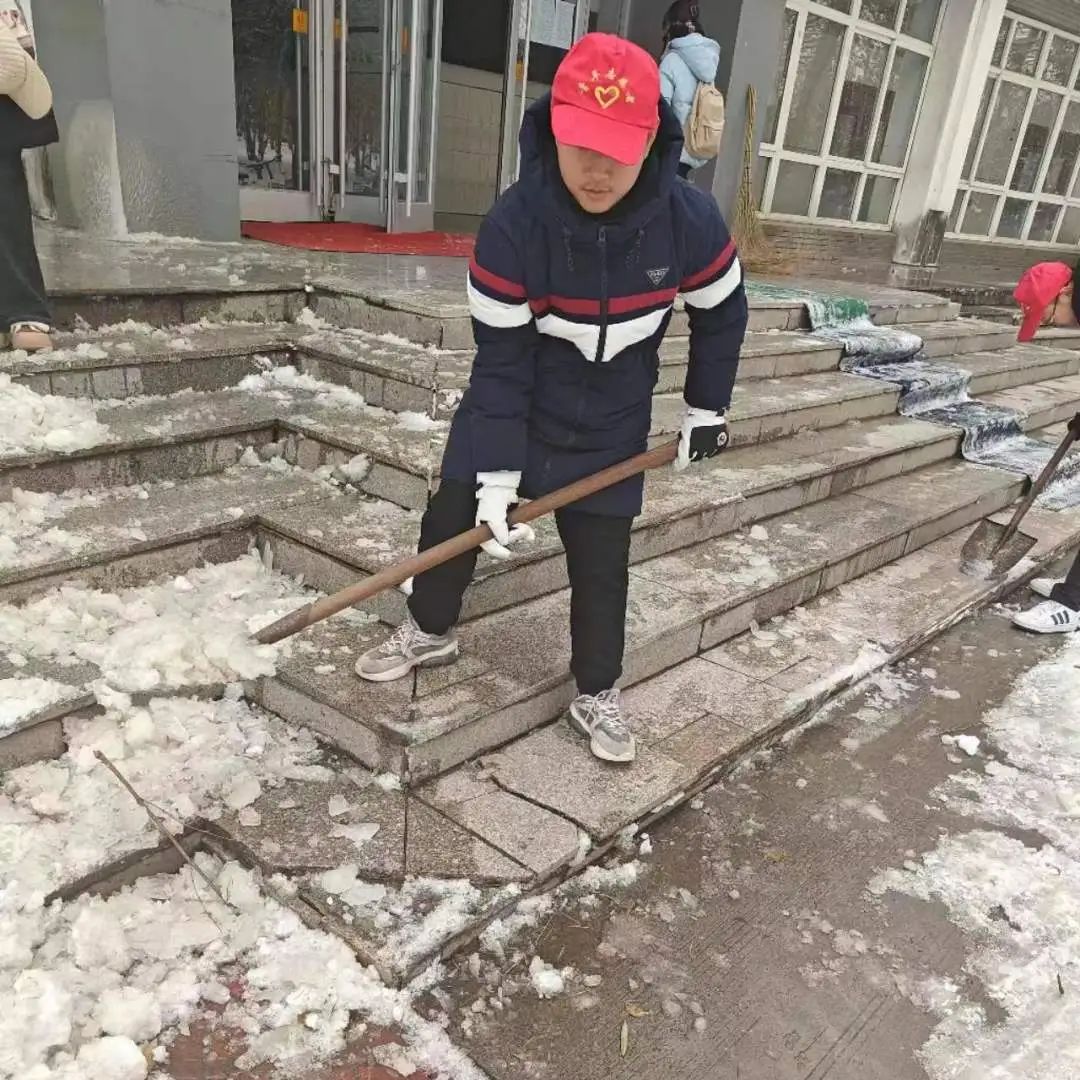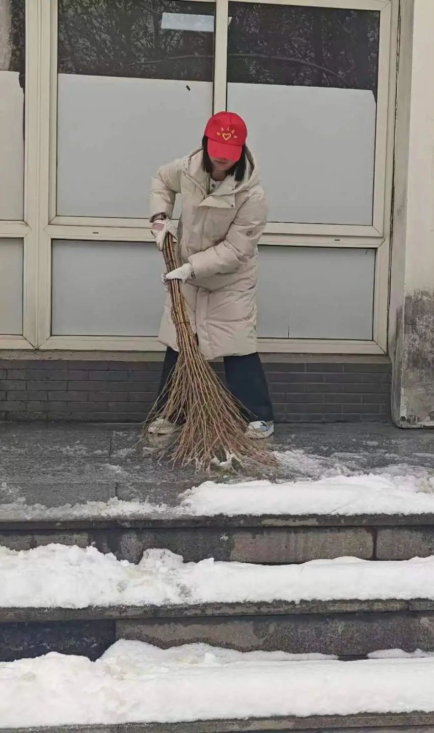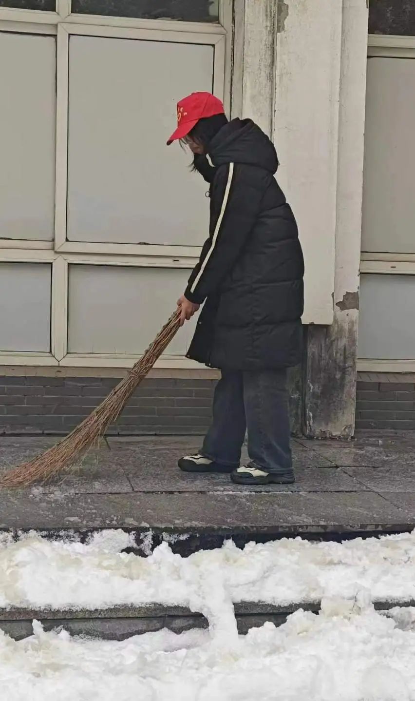本次活动得到了同学们的积极响应,同学们不畏严寒、热情奉献,踊跃报名参加清雪工作。志愿者们领取工具后,便立即有序地投入到扫雪工作中。大家在各自负责的区域,针对主干道上的积雪进行清理。尽管寒风凛冽,但寒冷的天气并没有打消同学们参与清雪工作的热情,同学们分工明确,团结协作,干劲十足。经过近三个小时的努力,积雪被基本铲除,路面整洁如初,圆满完成“护航”任务!他们用实际行动践行社会主义核心价值观,为群众办实事,为广大师生清扫出一条“温暖路”。