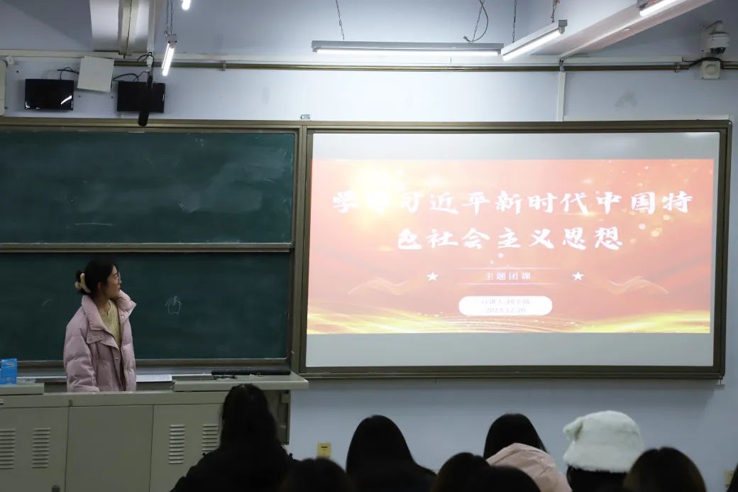本次团课的主题为“学习习近平新时代中国特色社会主义思想”,由2022级数据科学与大数据技术二班杨宇薇主讲,本次团课从四个方面展开,分别是“立足时代之基、回答时代之问的科学理论”,“系统完备的科学体系、特色鲜明的理论品格”,“经过实践检验、富有实践伟力的强大武器”,“21世纪马克思主义、当代中国马克思主义”。