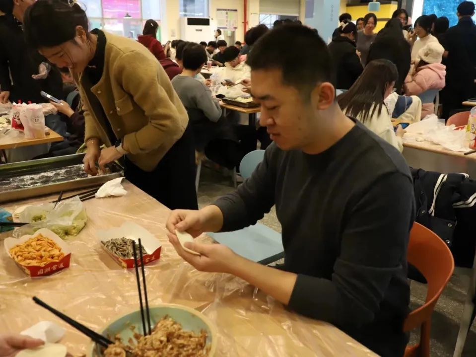 公司领导和其他教师们也积极参与了活动。公司领导亲自指导和示范和面技巧,而其他教师们则与员工们一同动手包制各式的饺子。他们的亲身参与不仅增进了师生之间的情感交流,也展现出教师们的亲和力和对员工的关怀之情。