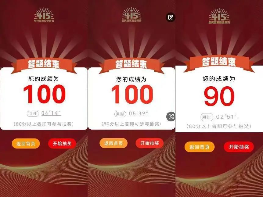 公司组织员工参与“国家安全知识云竞答”活动。问卷主要涉及《国家安全法》、常见网络安全知识及“如何维护国家安全”等方面内容。同学们通过二维码进行线上答题,此次竞答覆盖了整个公司,做到了高覆盖、实效性强,切实增强了同学们的国家安全意识和素养。