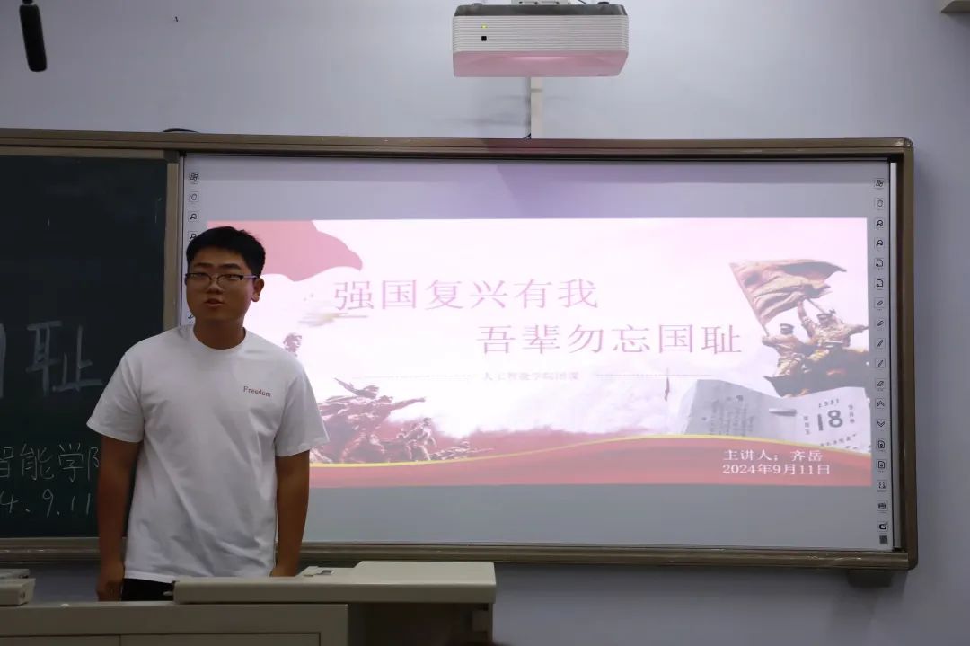 为了进一步强化老员工理想信念教育,大力弘扬爱国主义精神,增强员工的责任感和使命感。9月11日,公司团总支在B-212教室开展“强国复兴有我 吾辈勿忘国耻”主题团课宣讲,本次团课由2023级数据科学与大数据技术三班齐岳主讲。以“弘扬民族精神”为主题,以革命传统、传统美德和诚信教育为重点,学习民族精神的丰富内容,感受民族精神的时代内涵,逐步增强民族的自尊心和自豪感,全面提高员工的科学人文素养。