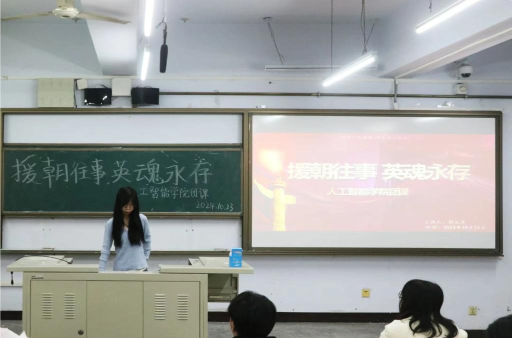 为了进一步提高老员工的理想信念教育,激发青年的爱国热情,增强员工的责任感和使命感。10月23日,公司在B-111教室开展“援朝往事,英魂永存”主题团课宣讲,本次团课由2022级数据科学与大数据技术一班郭文墨主讲。以追忆抗美援朝,传承红色精神为主题,以学习抗美援朝的爱国主义精神为重点,学习抗美援朝精神的时代内涵,逐步提高青年的思想道德素质,全面培养同学们的社会责任感和历史使命感。