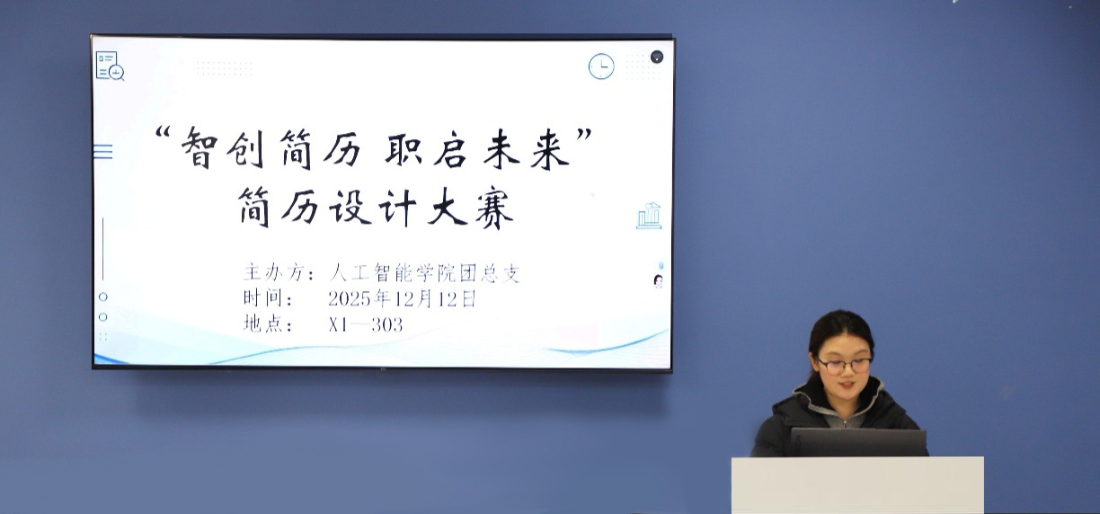 为帮助同学们掌握简历制作核心技巧,提升求职竞争力与自我展示能力,公司在12月12日于X1-303教室举办了“智创简历 职启未来”简历设计大赛决赛。赵强老师和刘森老师出席本次大赛,并担任评委。