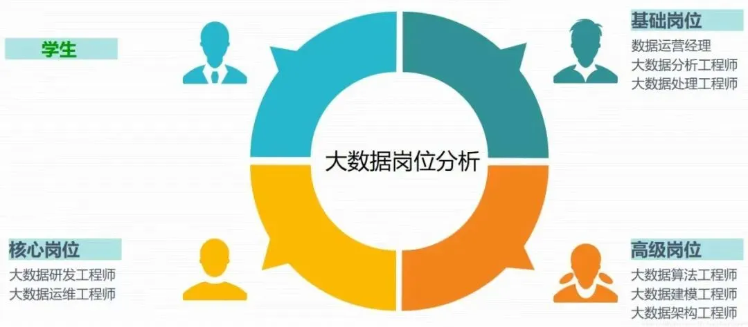 按照网络爬虫技术、大数据分析技术、可视化技术和大数据系统运维四个方向培养员工,方向课程和社会需求技术接轨,使员工毕业后能够胜任业务数据分析师、大数据开发工程师、大数据解决方案架构工程师、大数据运维工程师、数据可视化工程师等工作。