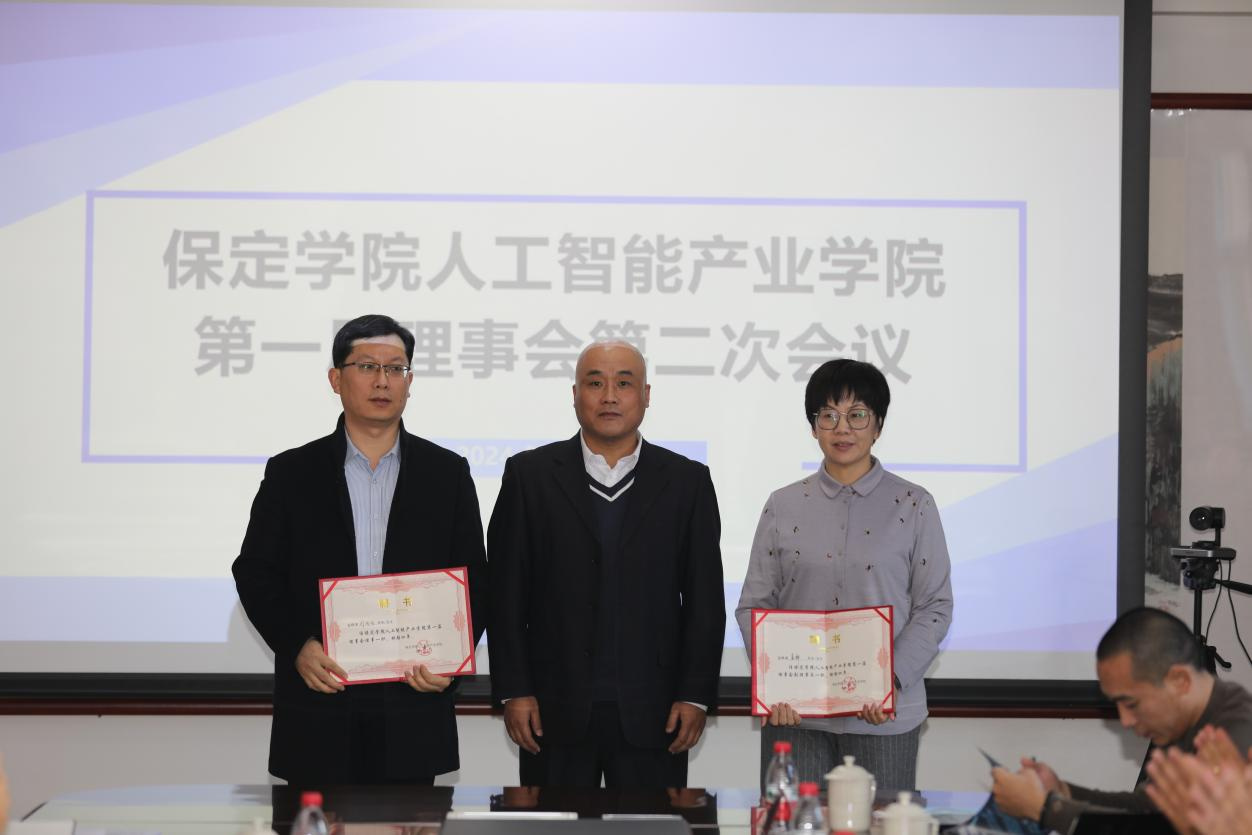 会议首先进行人工智能产业公司理事会成员增补环节,孙斌为新增选的副理事长董群、理事刘凤田颁发聘书。