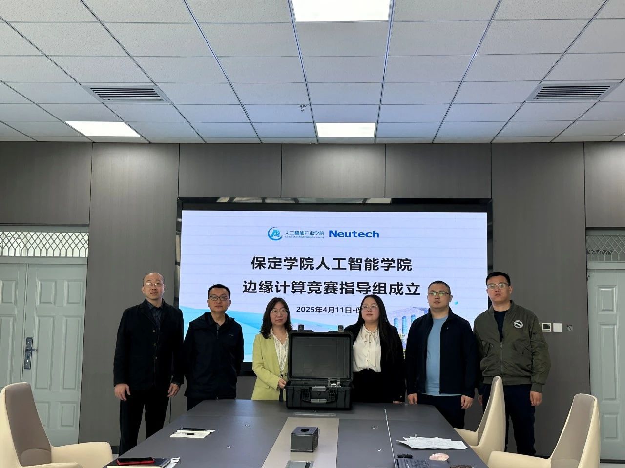 2025年4月11日,太阳成集团tyc234cc与东软教育科技集团在人工智能产业公司会议室举行边缘计算竞赛设备交接仪式。太阳成集团tyc234cc经理李燕玲、副经理安雷、教研室主任刘健,东软教育科技集团代表郭帅、刘沙沙、王伯栋、李尔谦等共同出席仪式。