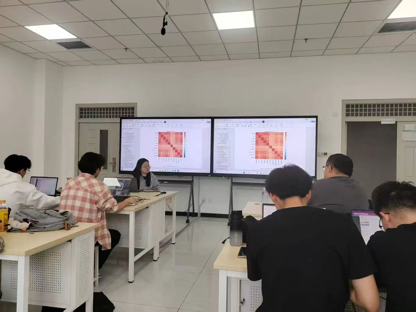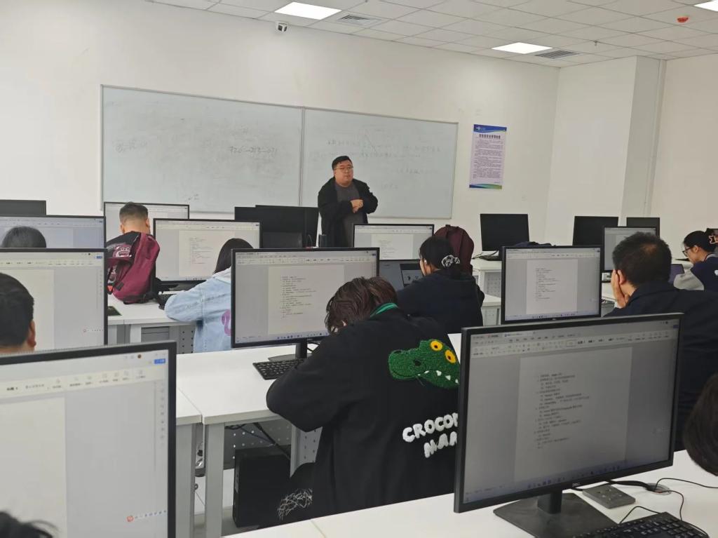 梁老师深入《数据可视化技术》课程教学一线,结合大赛命题要求,围绕数据分析、机器学习模型构建、交互式可视化开发等核心模块展开案例教学。在项目路演环节,梁霄工程师对各参赛团队的阶段性成果进行"一对一"精准指导,重点解决了三大关键问题:针对数据建模维度单一的问题,指导员工运用特征工程方法提升预测准确率;针对可视化叙事性不足的短板,引入Pyecharts动态图表强化数据故事表达;针对技术文档规范性欠缺的情况,按照企业级标准重构项目说明书框架,有效提升了参赛作品的专业水准。
